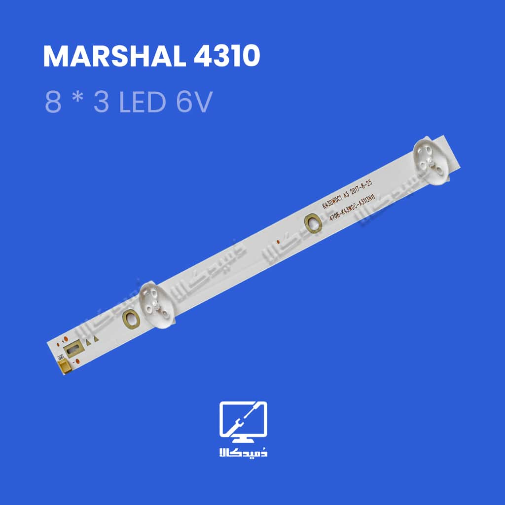 بک لایت تلویزیون مارشال مدل ME-4310 دارای 8 شاخه کامل است که بر روی هر خط کامل آن 3 ال ای دی قرار گرفته است.
