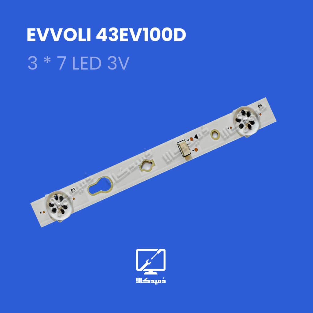 بک لایت تلویزیون ایوولی مدل 43EV100D دارای 3 شاخه کامل است که بر روی هر خط کامل آن 7 ال ای دی قرار گرفته است.