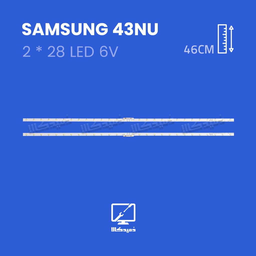 بکلایت سامسونگ 43NU دارای 2 شاخه ال ای دی بار است که بر روی هر خط کامل آن 28 ال ای دی قرار گرفته است.