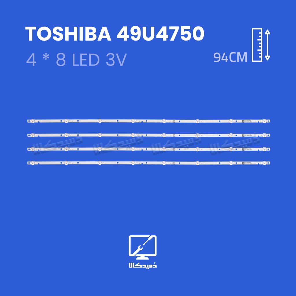 بک لایت تلویزیون توشیبا مدل 49U4750 دارای 4 شاخه کامل است که بر روی هر خط کامل آن 8 ال ای دی قرار گرفته است.