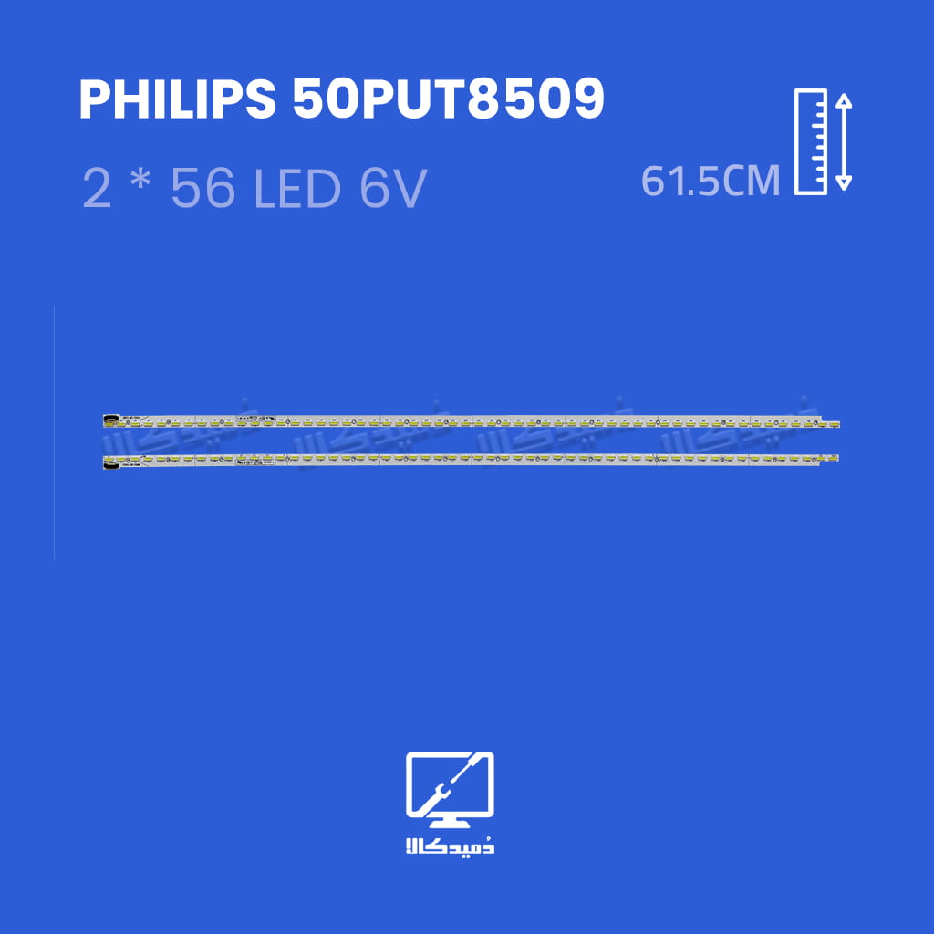 بک لایت تلویزیون فیلیپس مدل 50PUT8509 دارای 2 شاخه ال ای دی بار است که بر روی خط آن 56 ال ای دی قرار گرفته است.