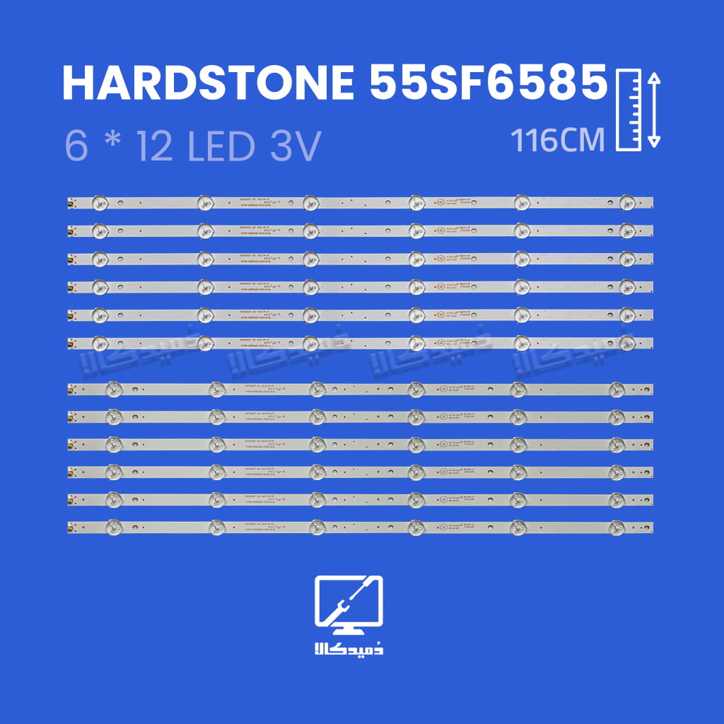 بک لایت تلویزیون هاردستون مدل 55SF6585 دارای 12 شاخه کامل است که بر روی هر خط کامل آن 6 ال ای دی قرار گرفته است.